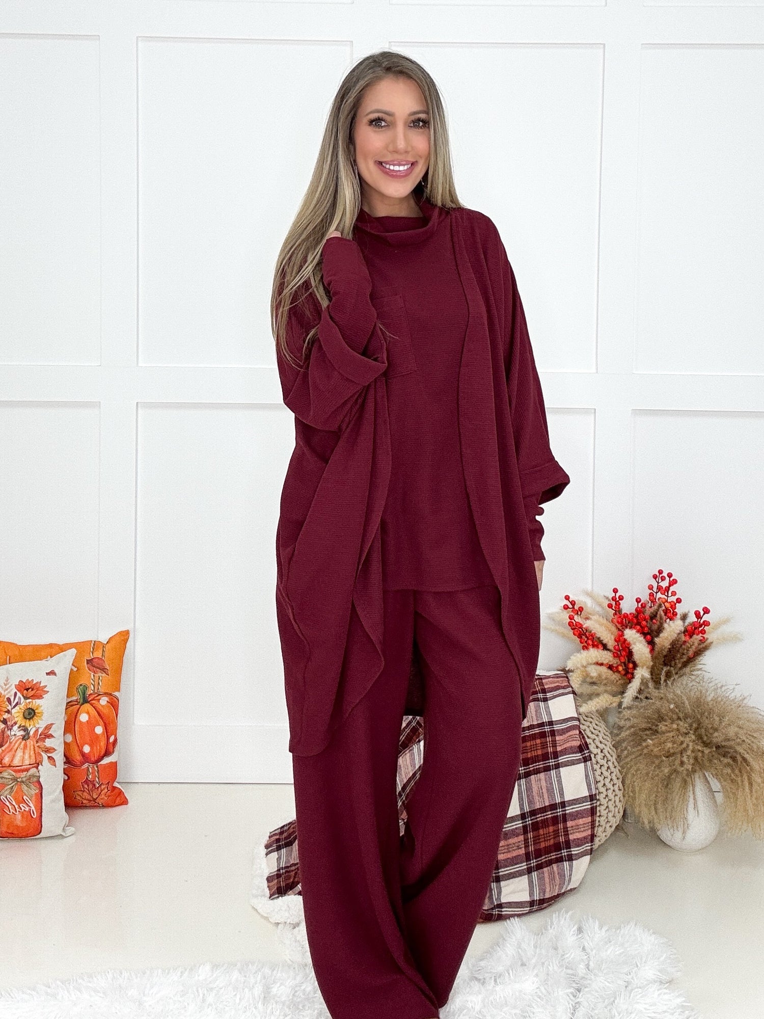 Elevate your everyday style with the Dear Scarlett Getaway Set. Your 3-in-1 wardrobe wonder! This versatile collection features a cozy long sleeve pocket top, a sleek mock neck layer, and a pocket perfect cardigan, all designed for ultimate comfort and style. Paired with comfy wide leg pants, it’s ready to take you from brunch dates to movie marathons with effortless charm.