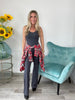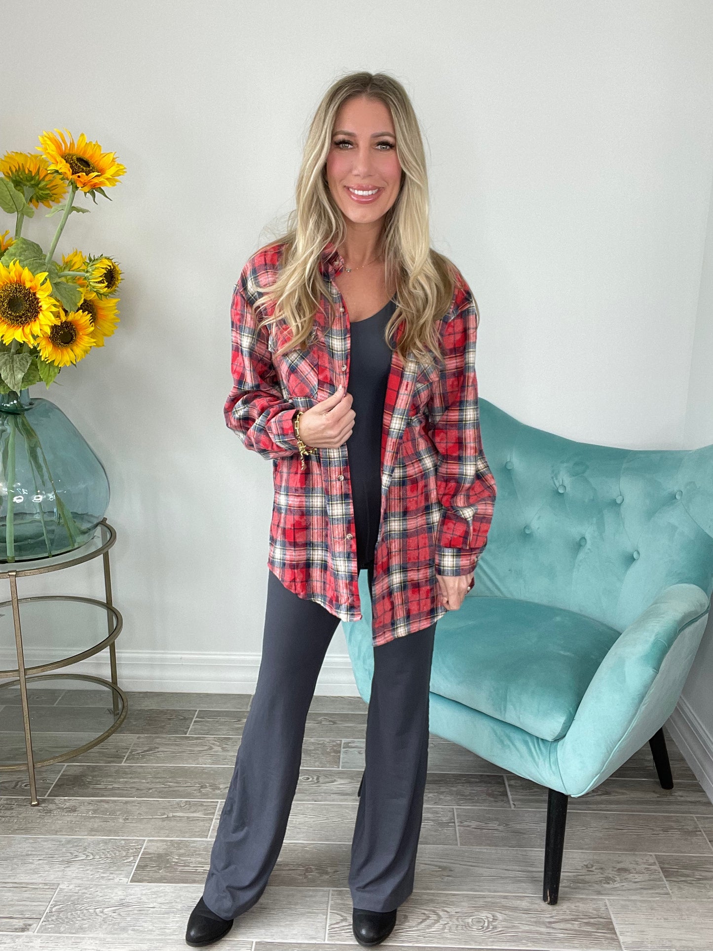 This spandex jumpsuit is going to change your life. It has a built in bra and padding. It is so flattering and comfortable on. You will want to wear it to work, dinner and bed! Pair it with a cute sweathsirt or flannel. Go true to size in this.