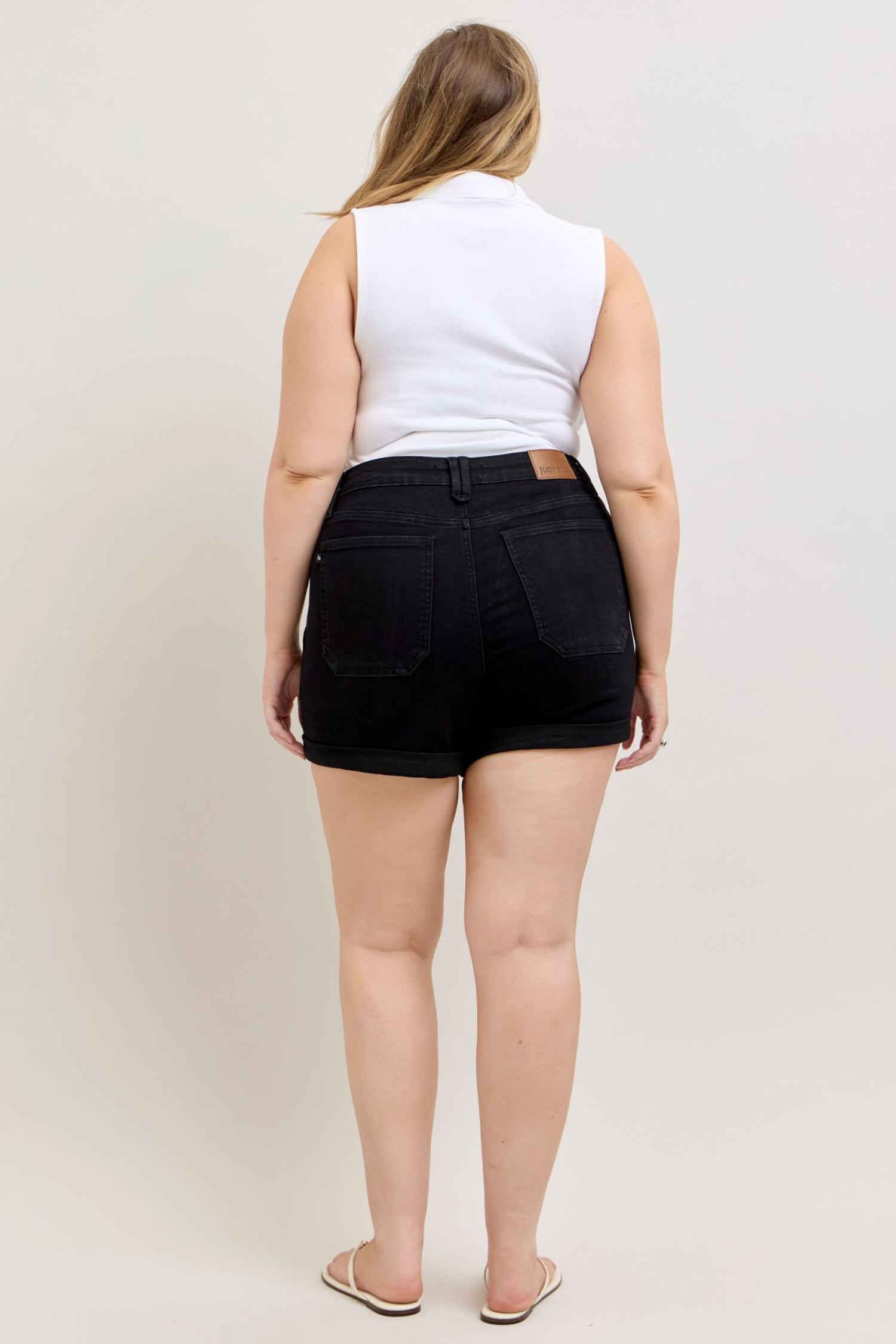 Meet the shorts you’ll reach for on repeat. These black Judy Blue shorts are made with that super stretchy and soft denim everyone loves! The flattering high rise fit hugs in all the right places while the cuffed hem give them a polished, put-together feel.