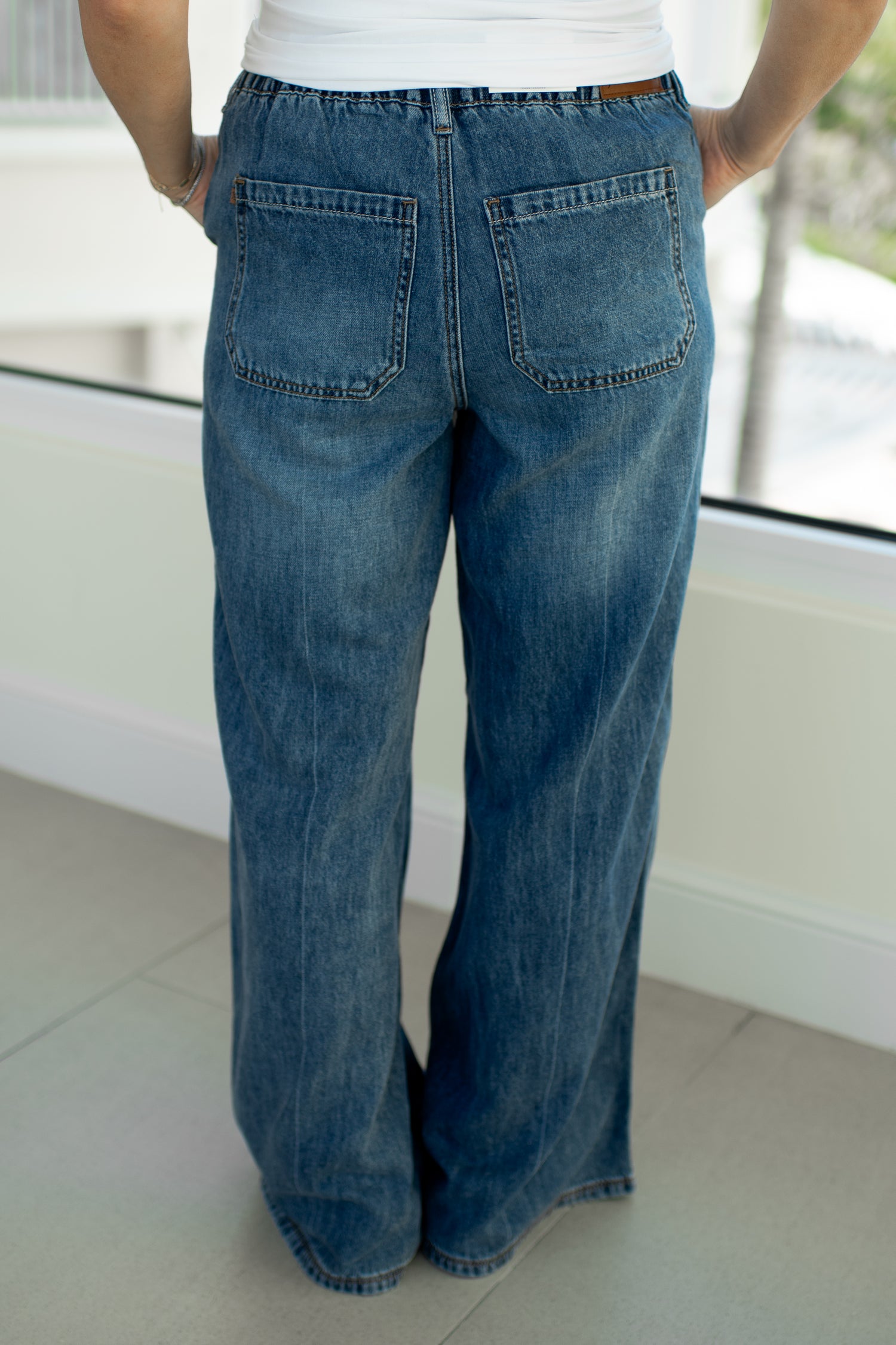 Slip into the softest blend of denim-meets-comfy with these wide-leg drawstring jeans. They have a relaxed, casual vibe with a stretchy smocked waistband, adjustable rope-style tie, and the perfect drape through the leg. Lightweight, breathable, and easy to move in—these jeans feel like loungewear but look like effortless everyday denim. Dress them up with a fitted top or keep it cozy with a sweatshirt… either way, they’re that pair you’ll reach for again and again.